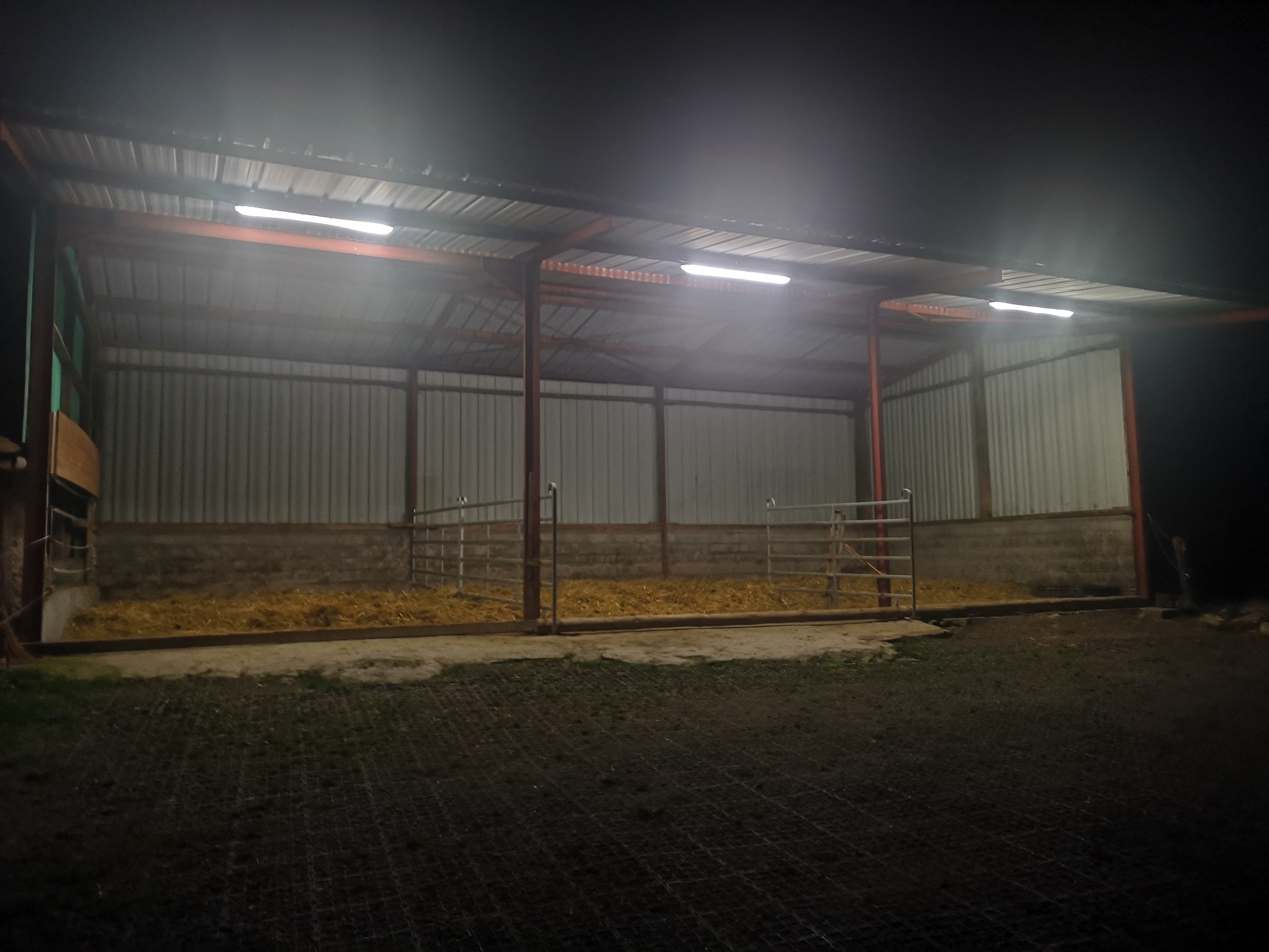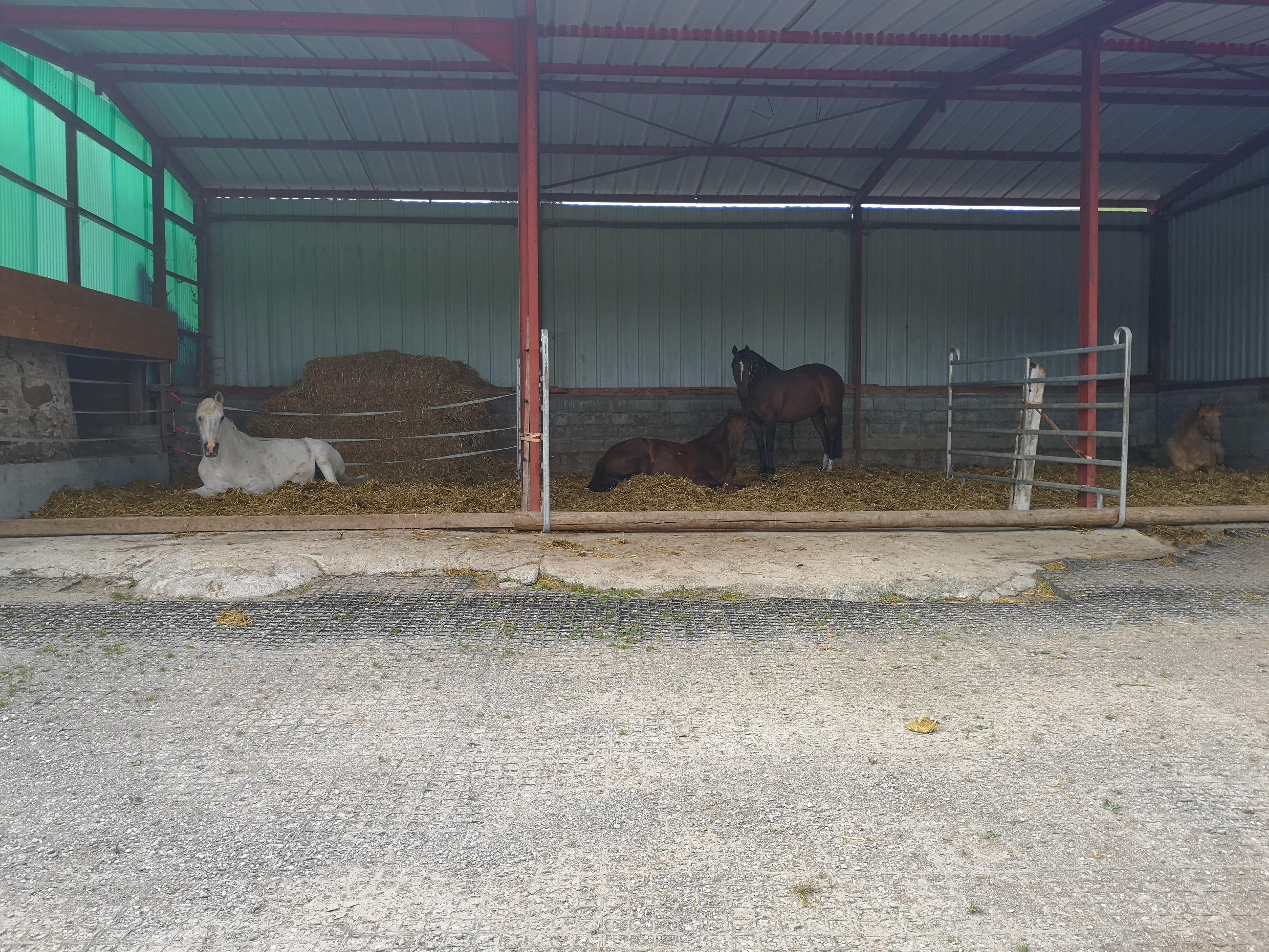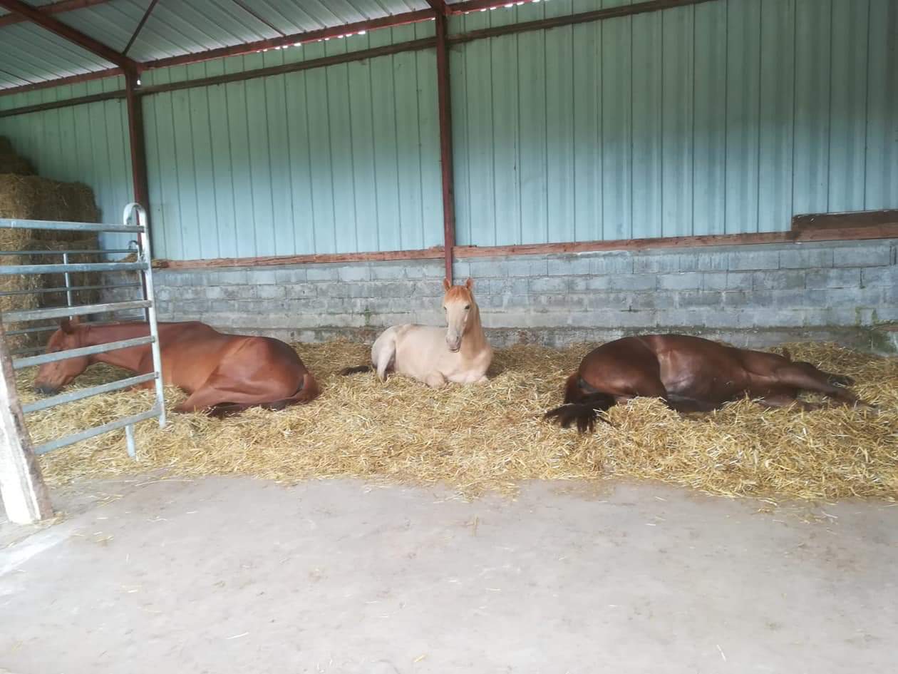 Il y a également un abri de 15m2 adjacente à la stabulation avec une couche de sable pour le confort de tous.
